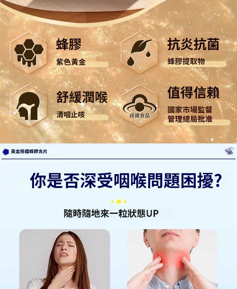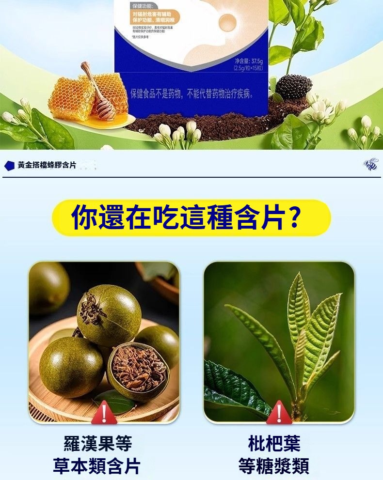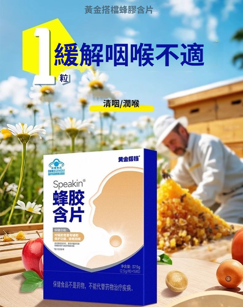黃金搭檔蜂膠含片15粒/盒成人保護嗓子緩解嗓子不適教師主播適用