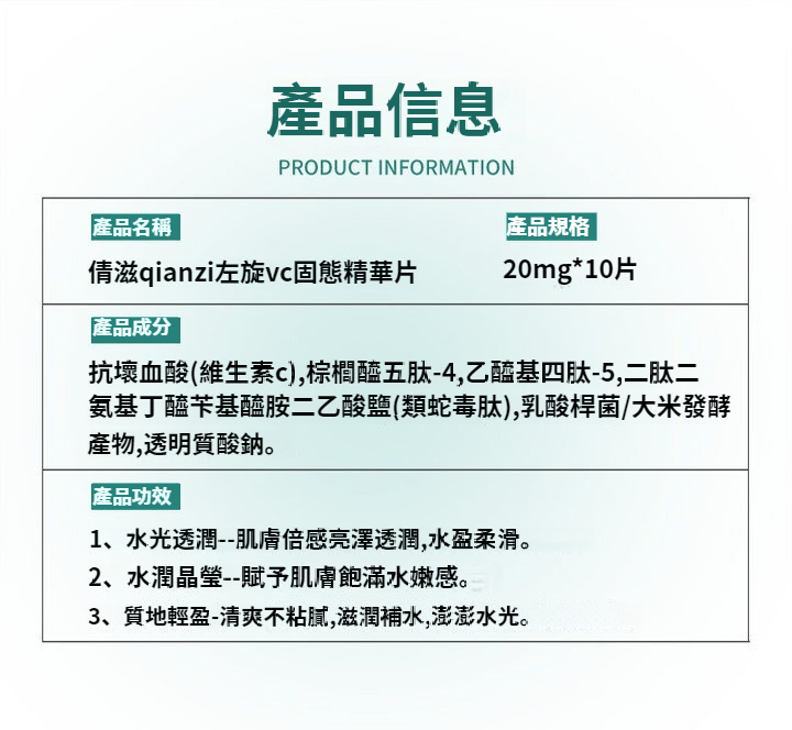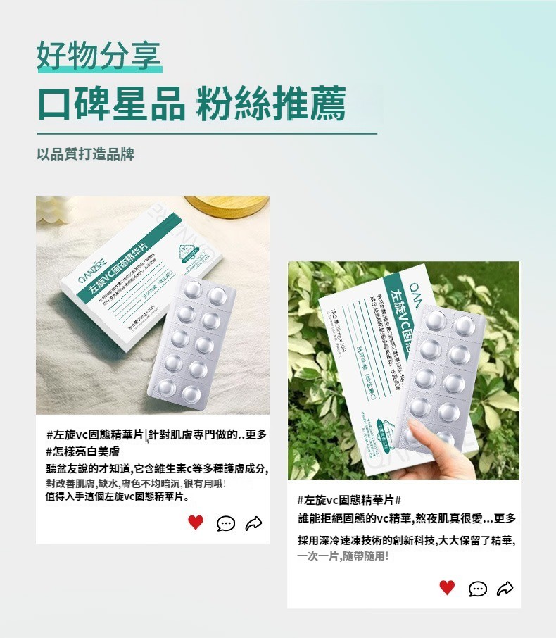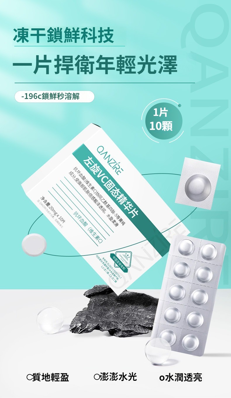 QANZIRE左旋VC固態精華片 凍乾片臉部護理抗氧凍乾精華片 NT$ 980