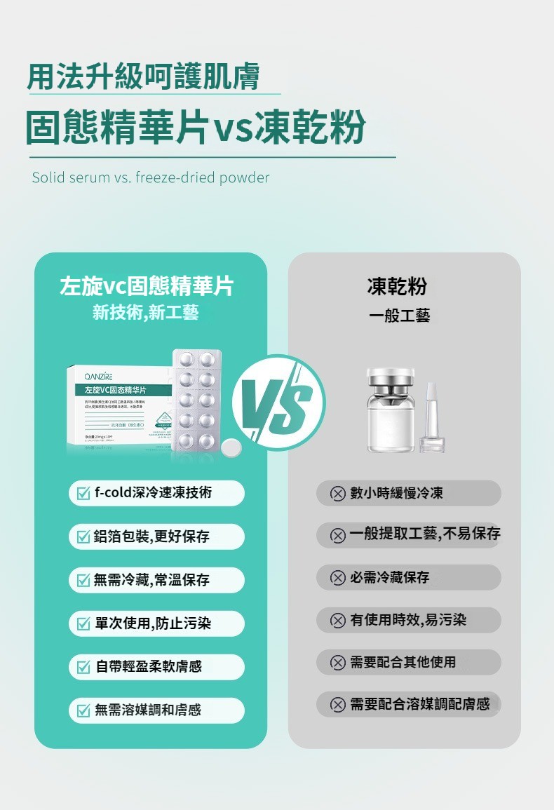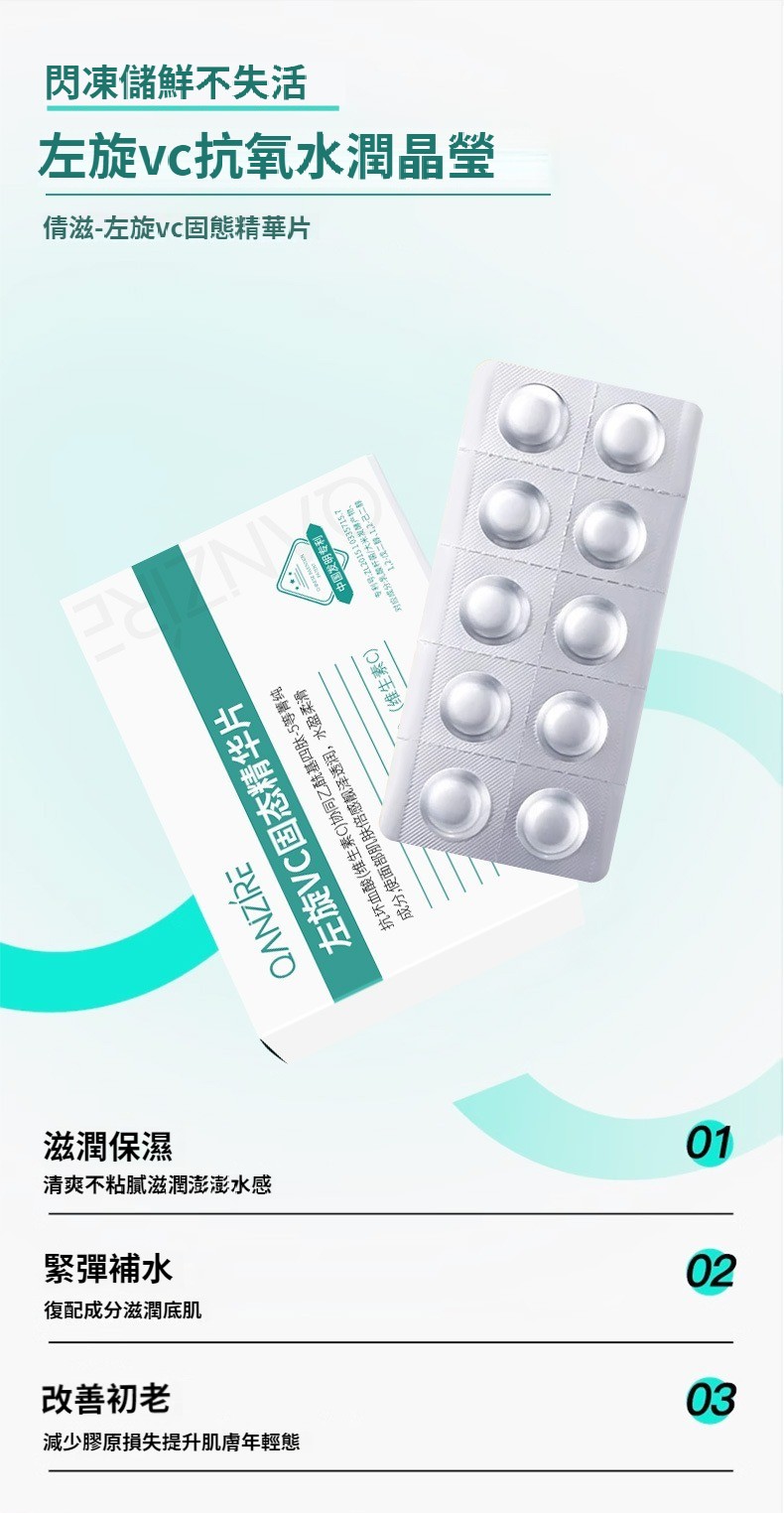 QANZIRE左旋VC固態精華片 凍乾片臉部護理抗氧凍乾精華片