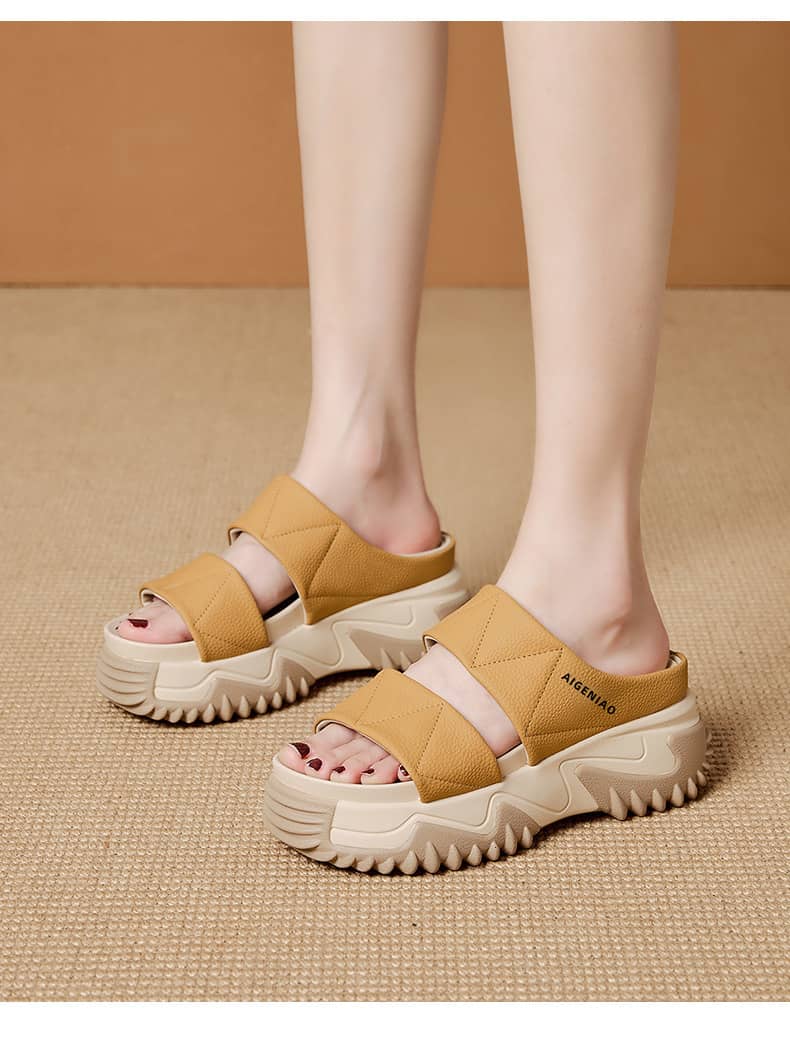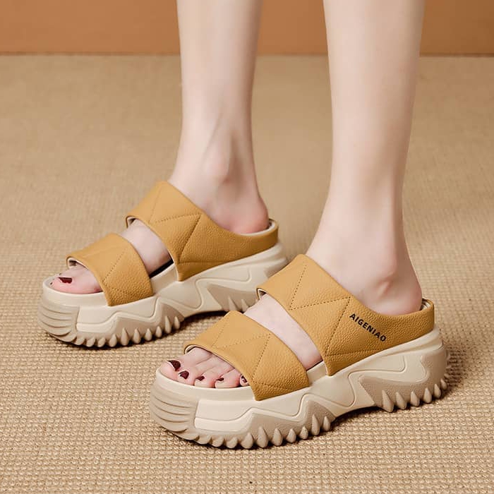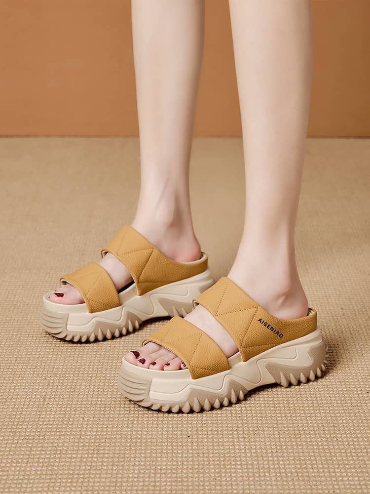時尚舒適女士鬆糕軟底一字拖鞋 黃色