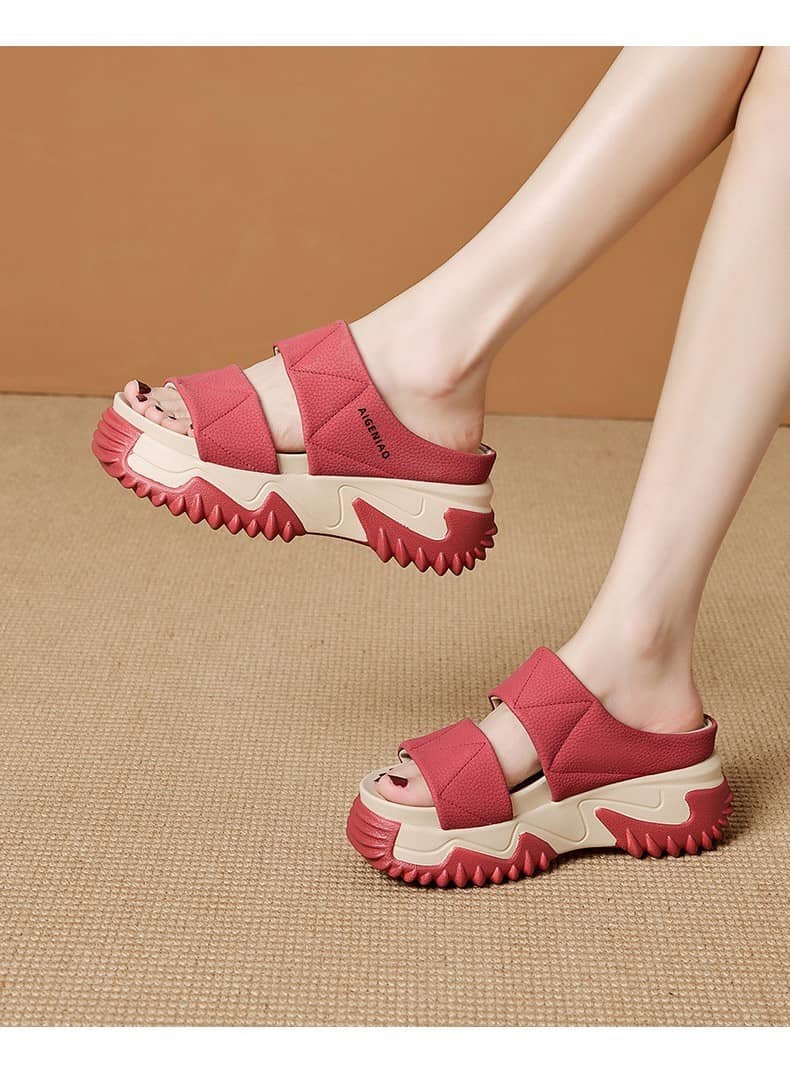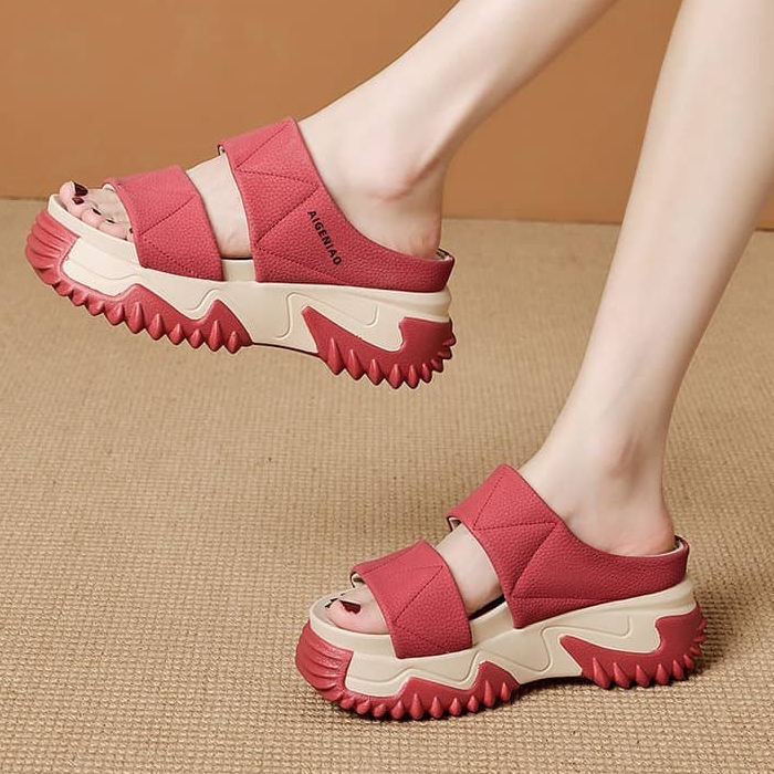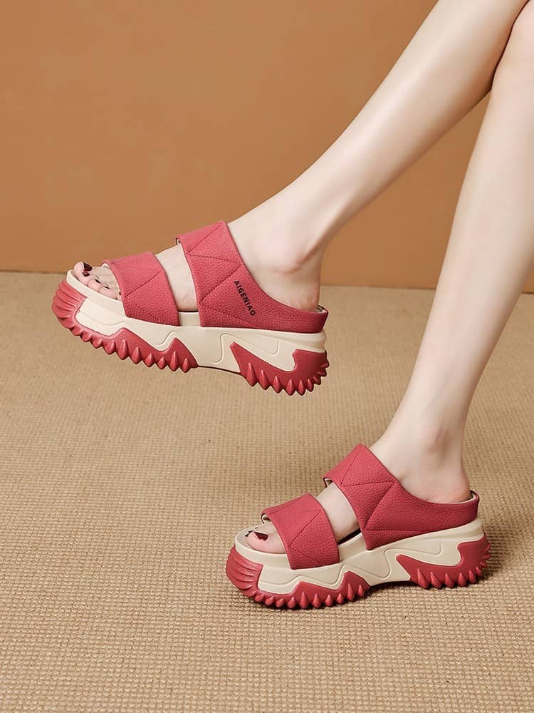 時尚舒適女士鬆糕軟底一字拖鞋 紅色