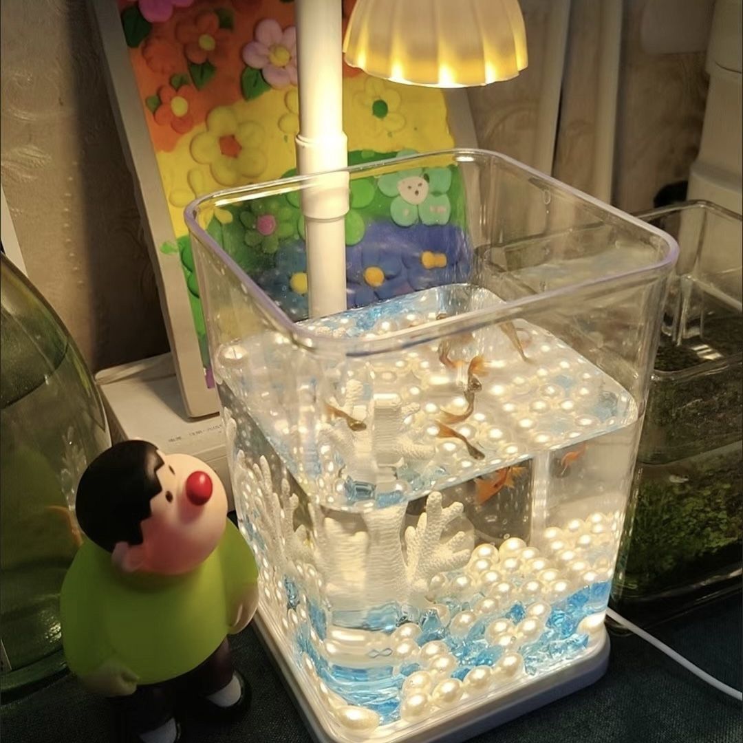 透明小魚缸冰晶石桌面創意生態鬥魚缸珍珠碎鑽景觀缸裝飾製作全套