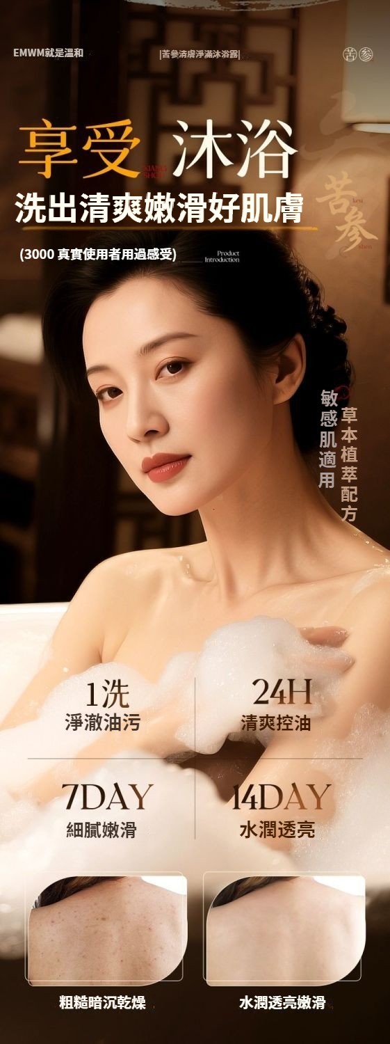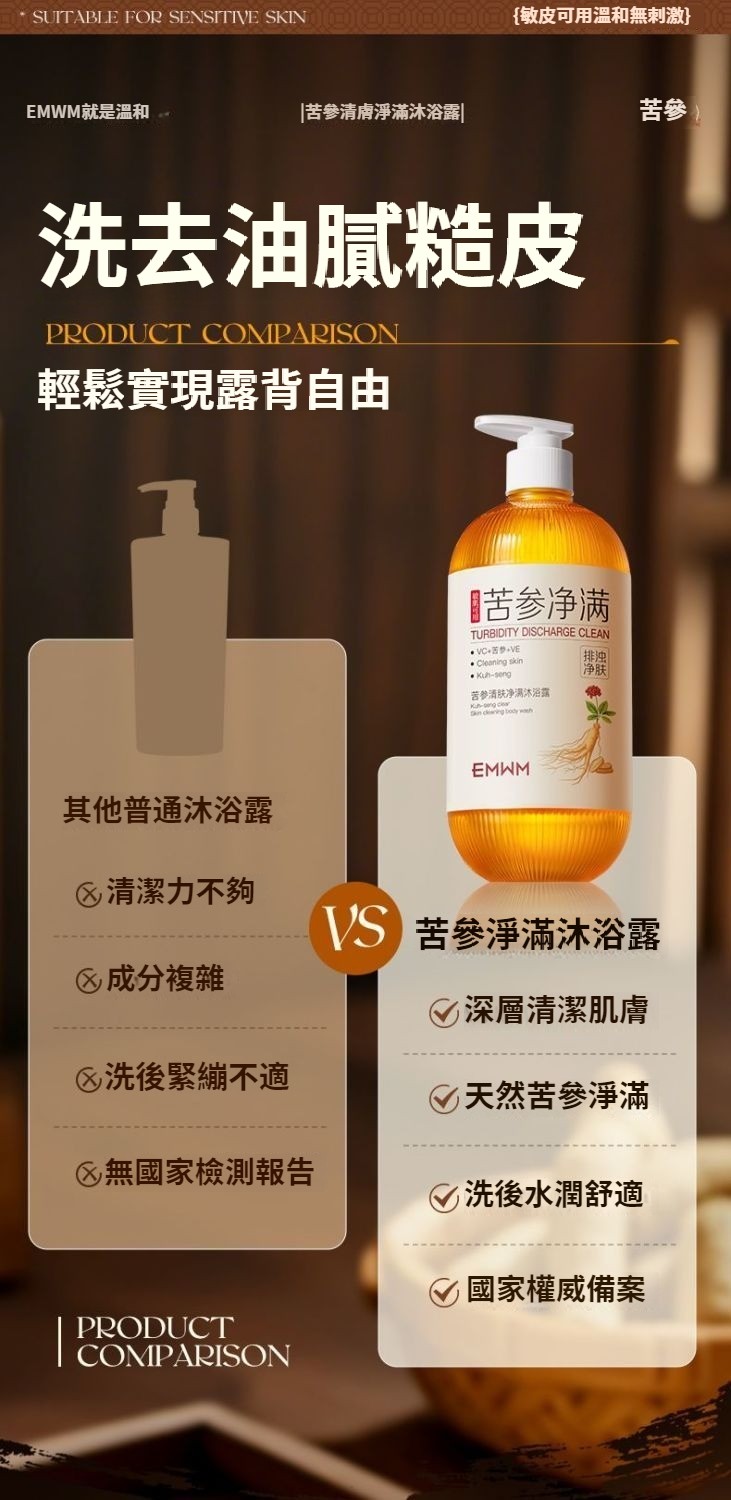 【天然硫磺苦參淨滿沐浴露】苦參香皂控油保濕祛痘殺菌止癢 大容量裝