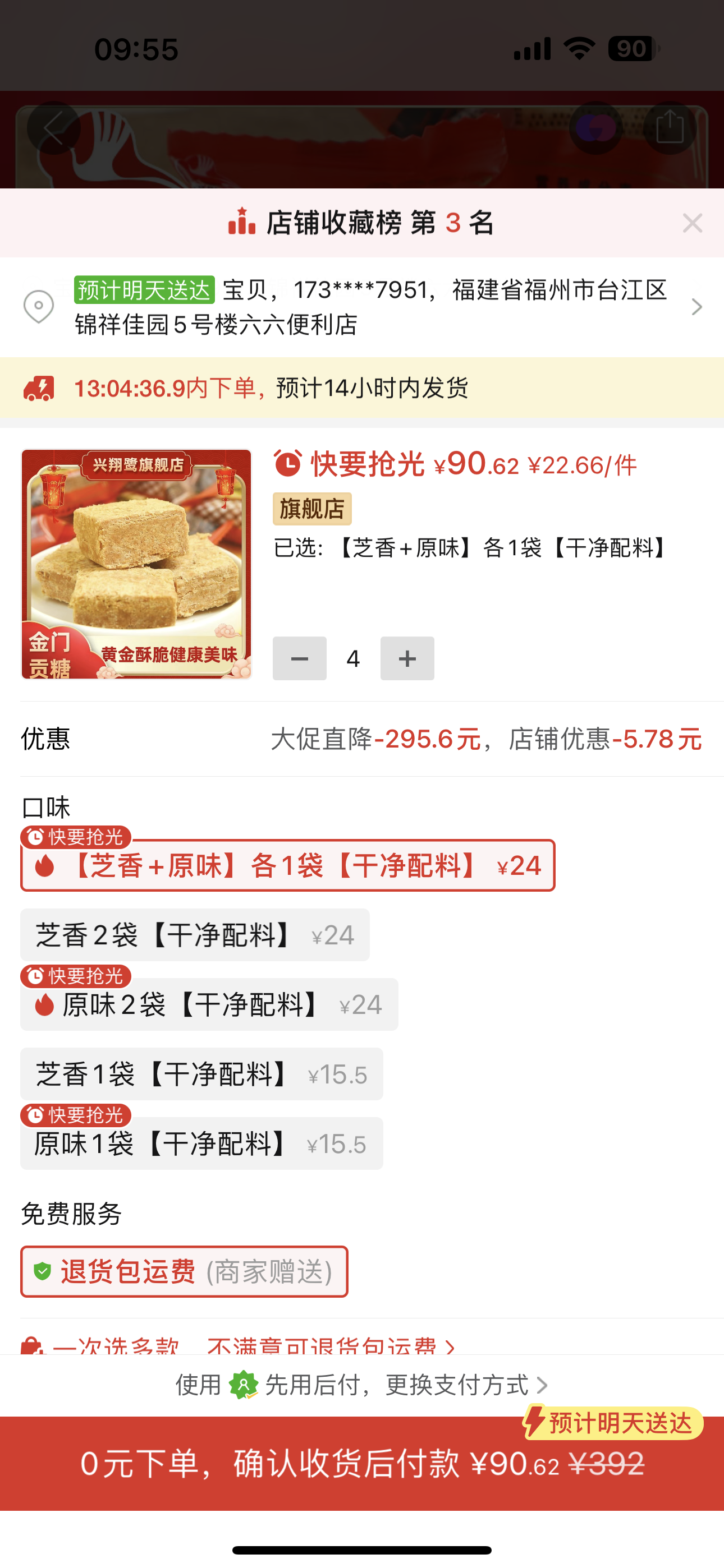 ①金門貢糖芝香味4袋+原味4袋+②中華牛寶1盒