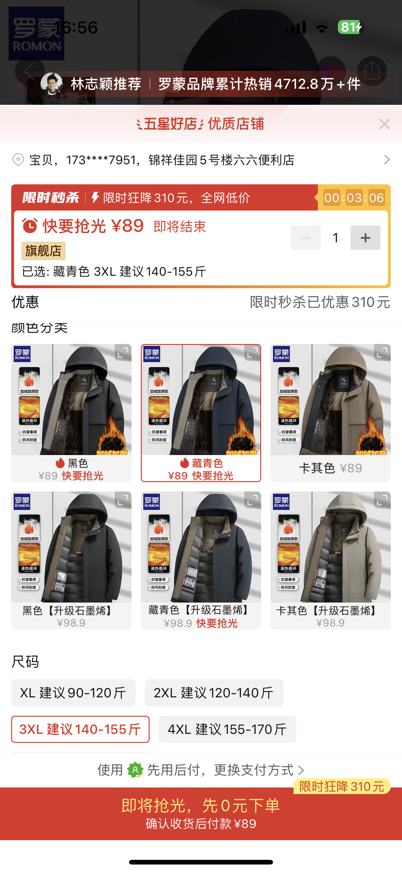 石墨烯棉襖外套一件,藏青色,尺碼3XL
