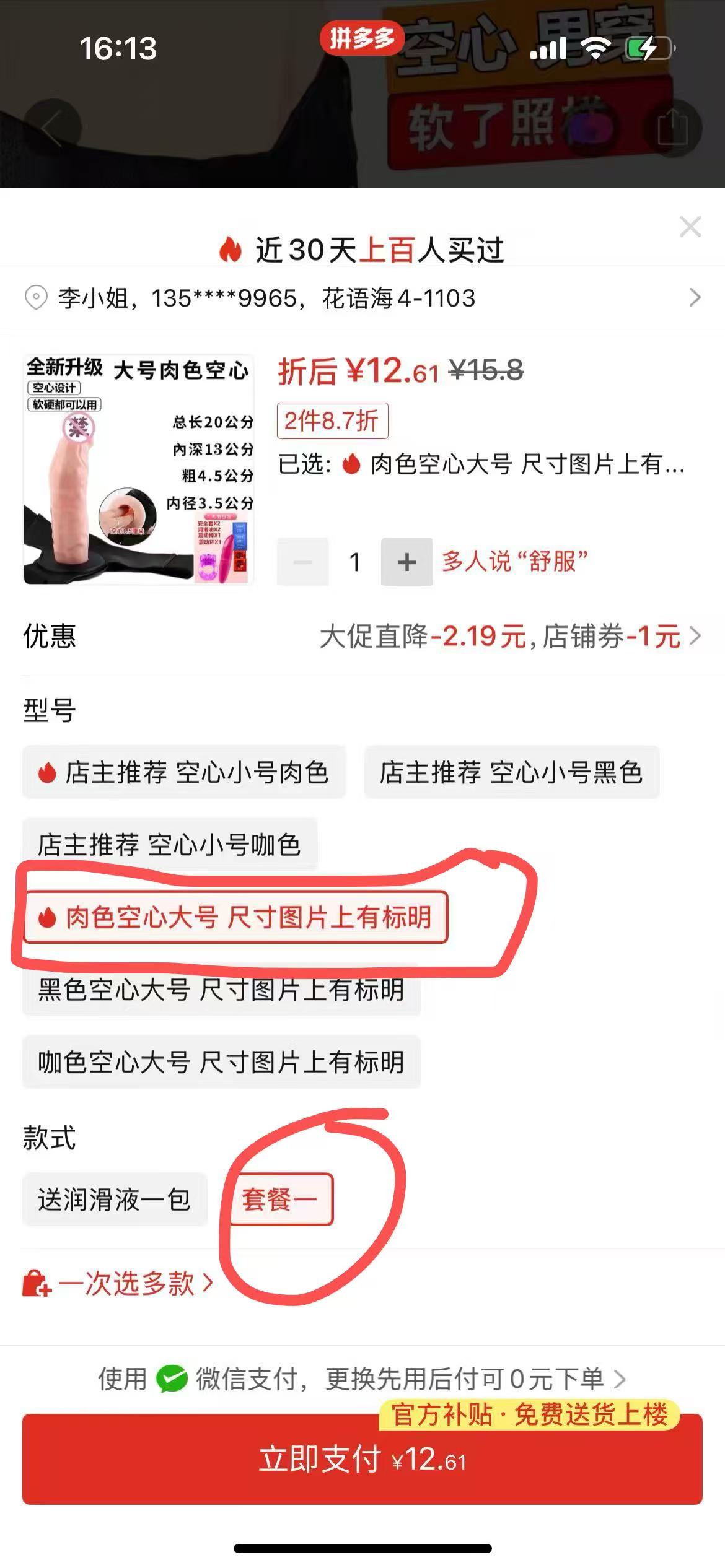 ②男用空心陰莖套 1套(肉色大号,套餐一)