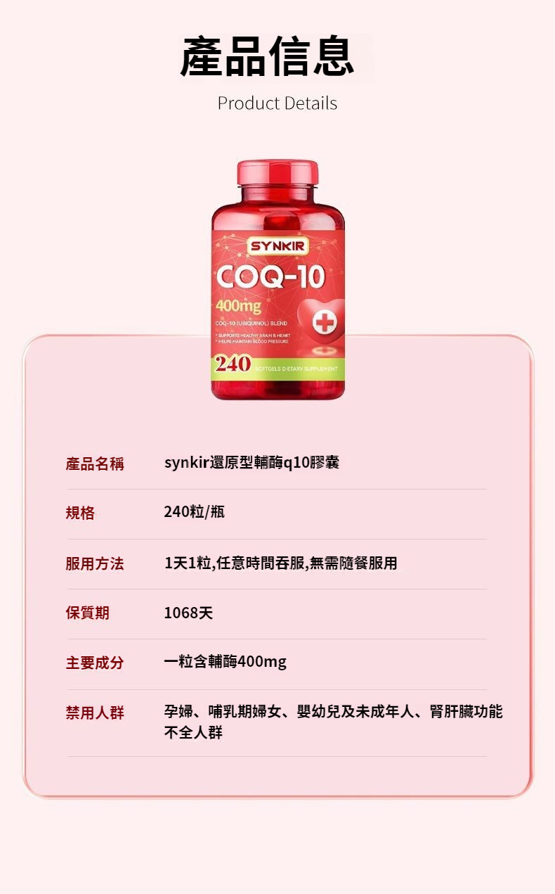 美國直郵進口加強版400mg還原型輔酶Q10加強版240粒中老年正品