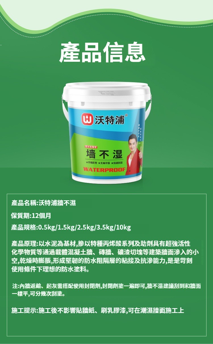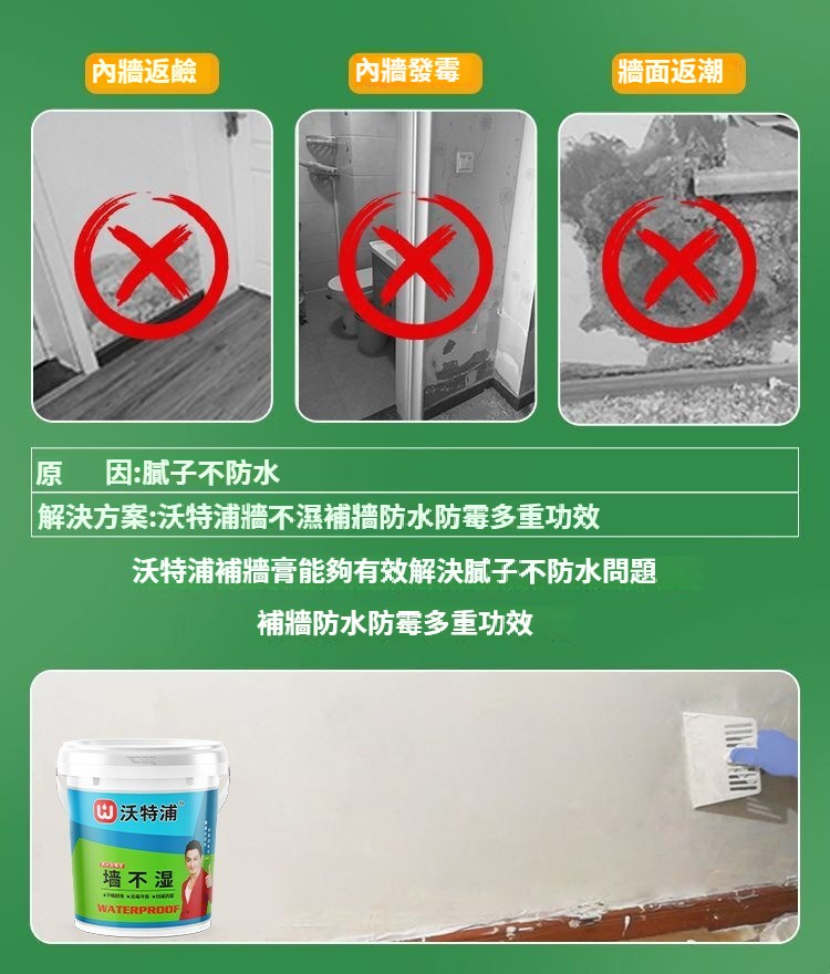 正品沃特浦【墻不濕】補牆膏,室內白色牆面防水修補膏,家用白牆牆面修復劑,防潮防水環保凈味