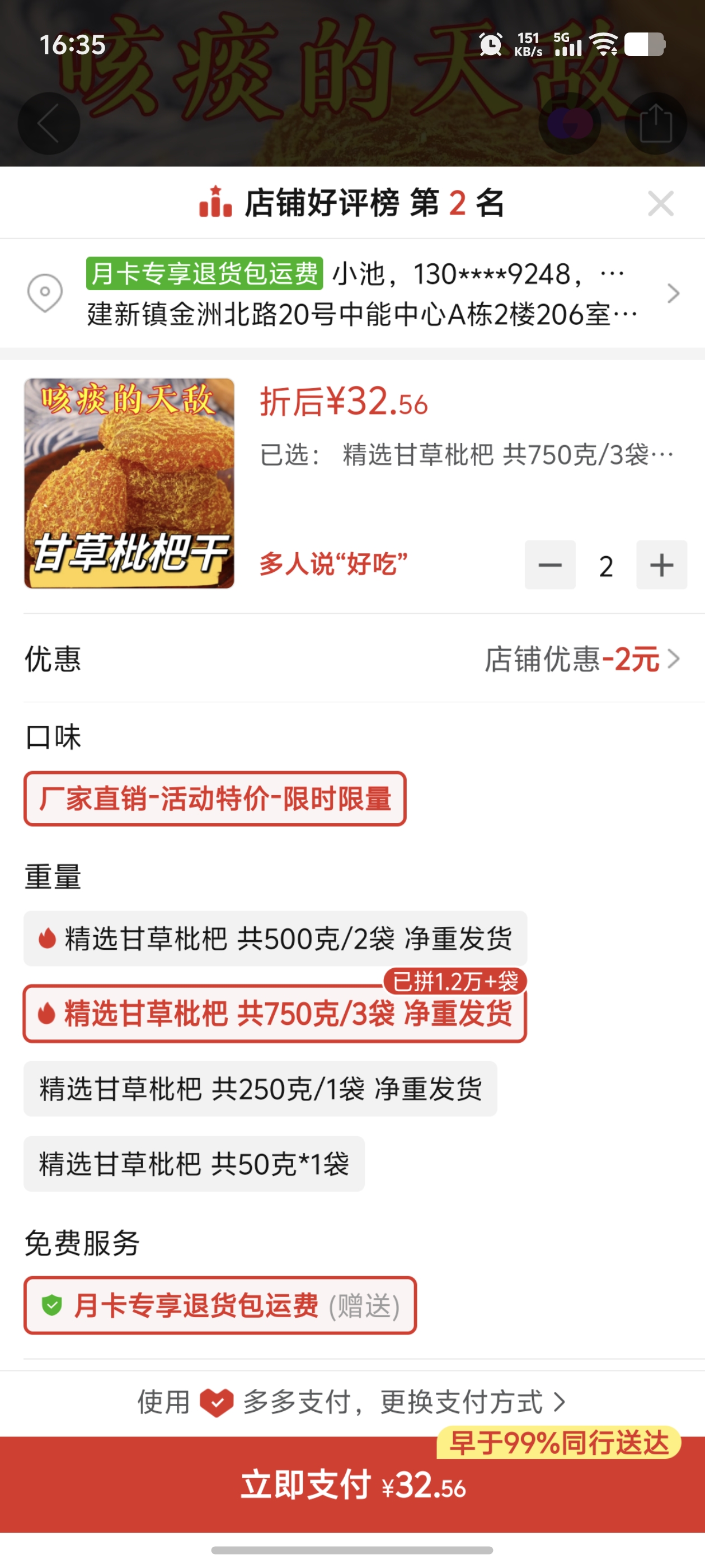 ① 精選甘草枇杷乾 6袋 1500克