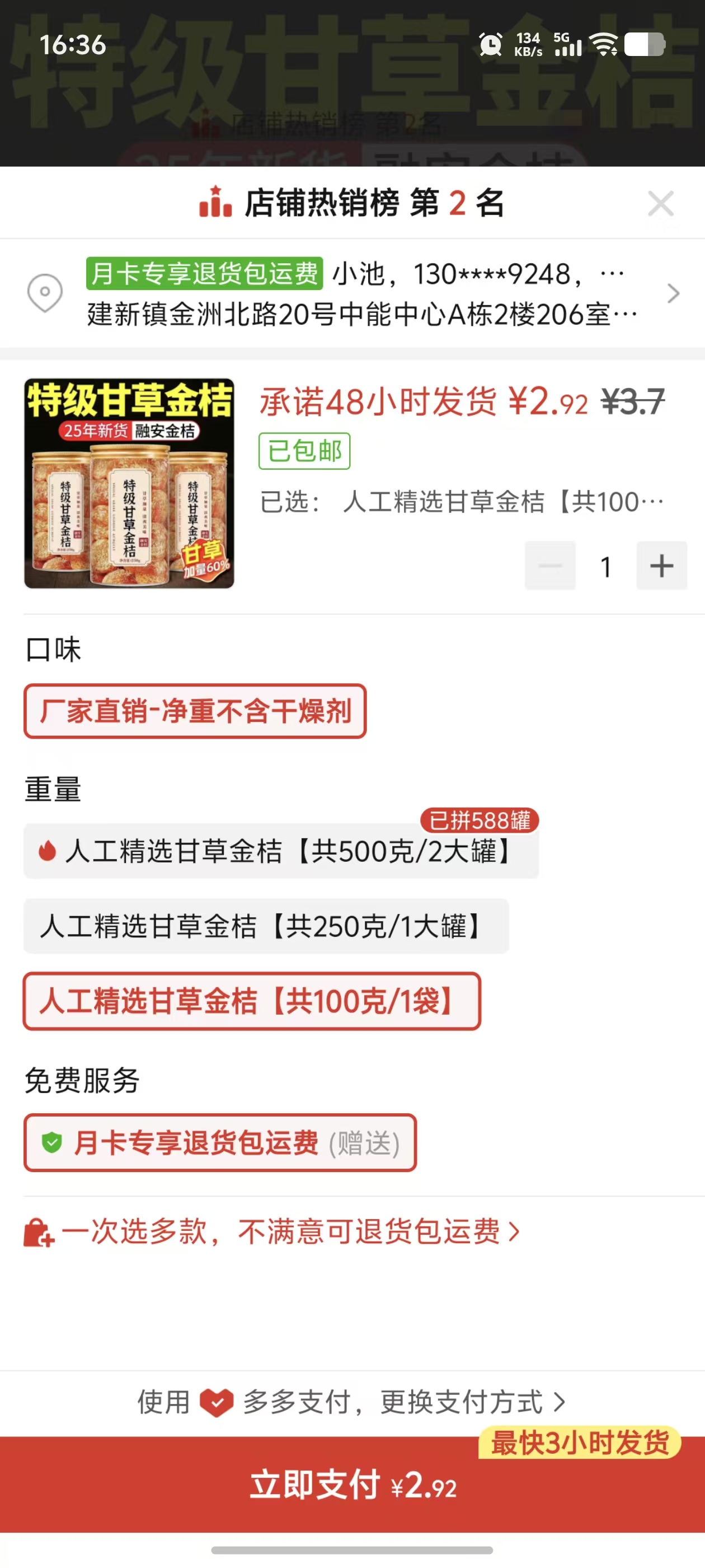 ② 特級甘草金桔1罐 100克