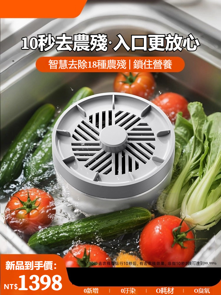 第 1 件 : 新一代智能食材淨化機【活氧殺菌99.9% 臭氧+超聲波+羟基離子】- 徹底分解農藥、激素、抗生素,一機洗淨水果、蔬菜、海鮮、肉類!生鮮食材的守護者,家人吃的更放心~