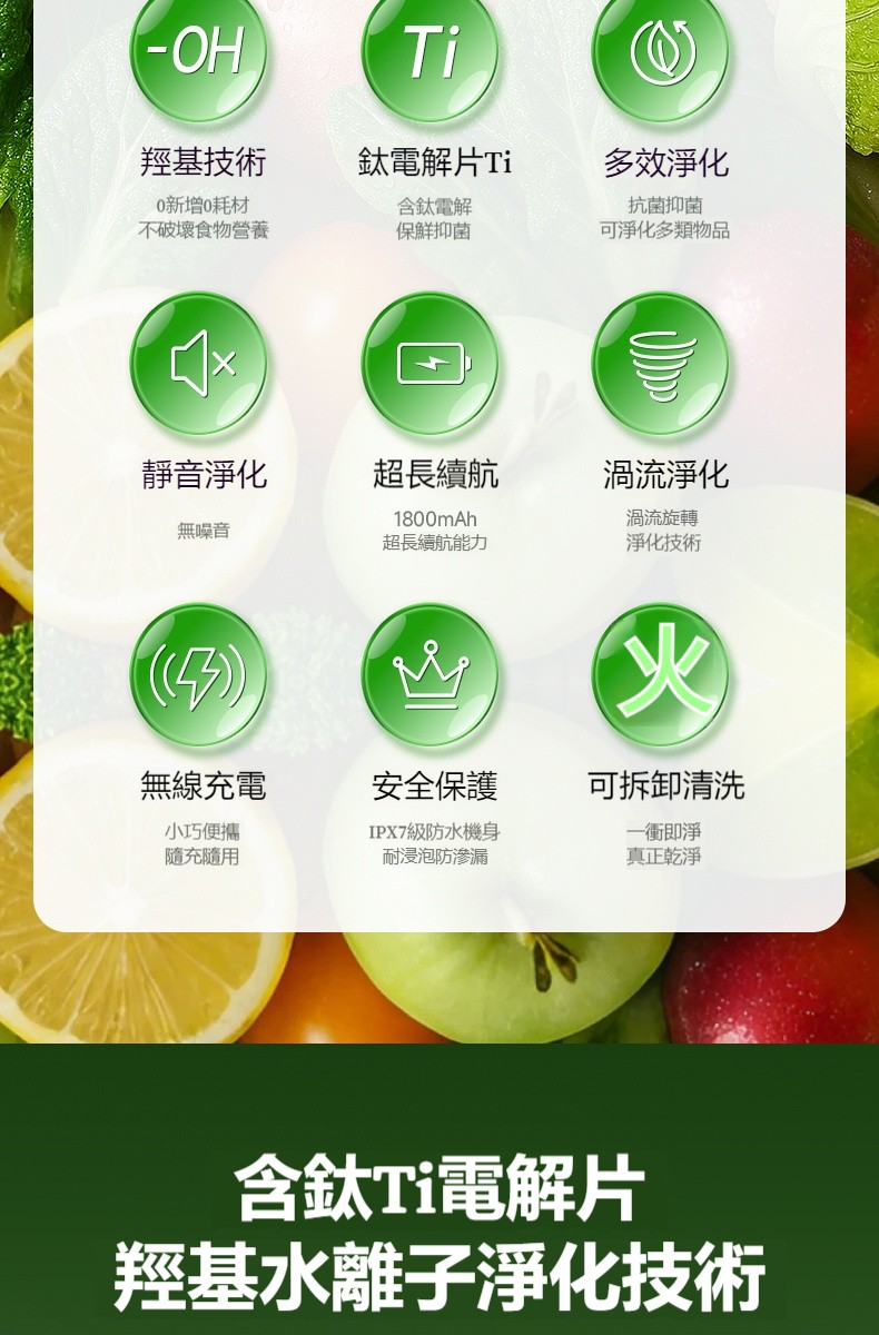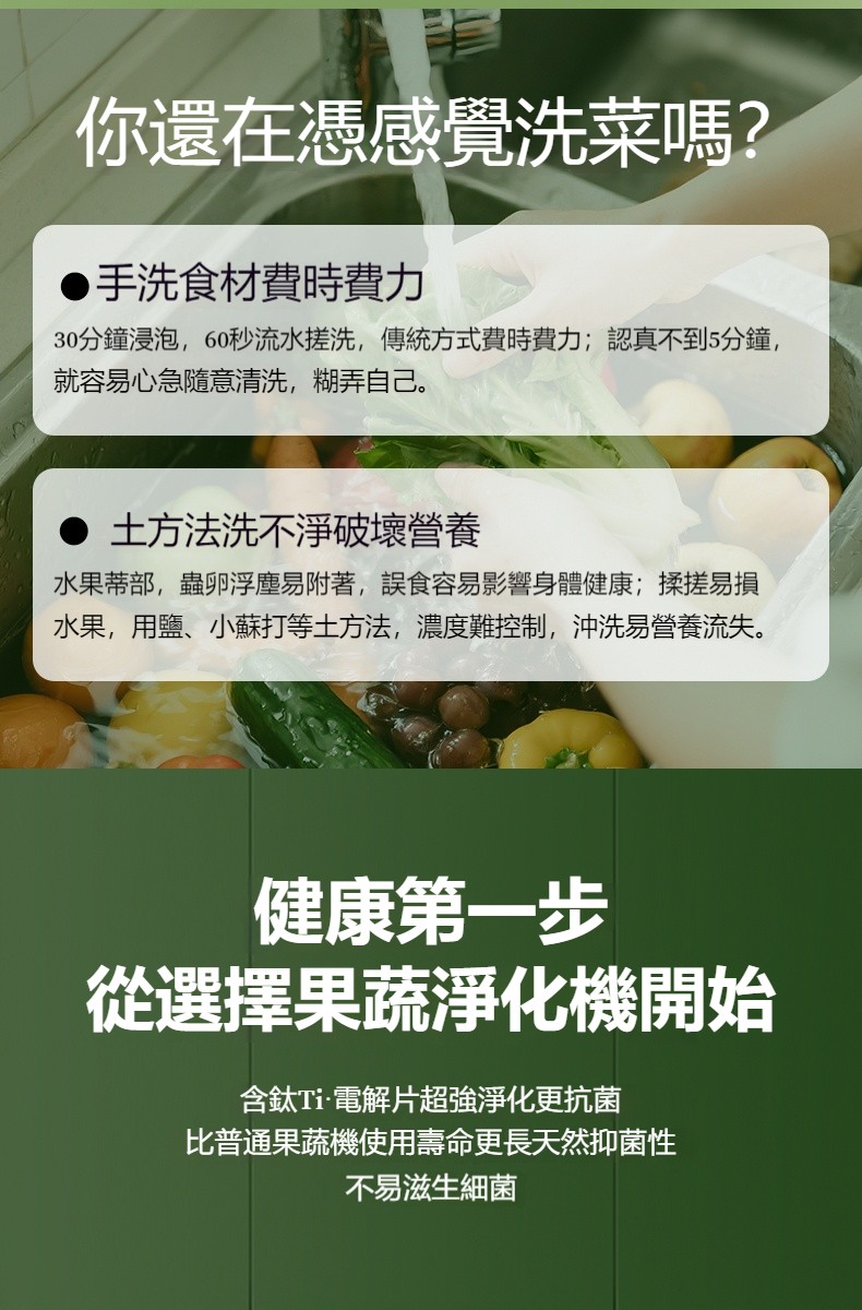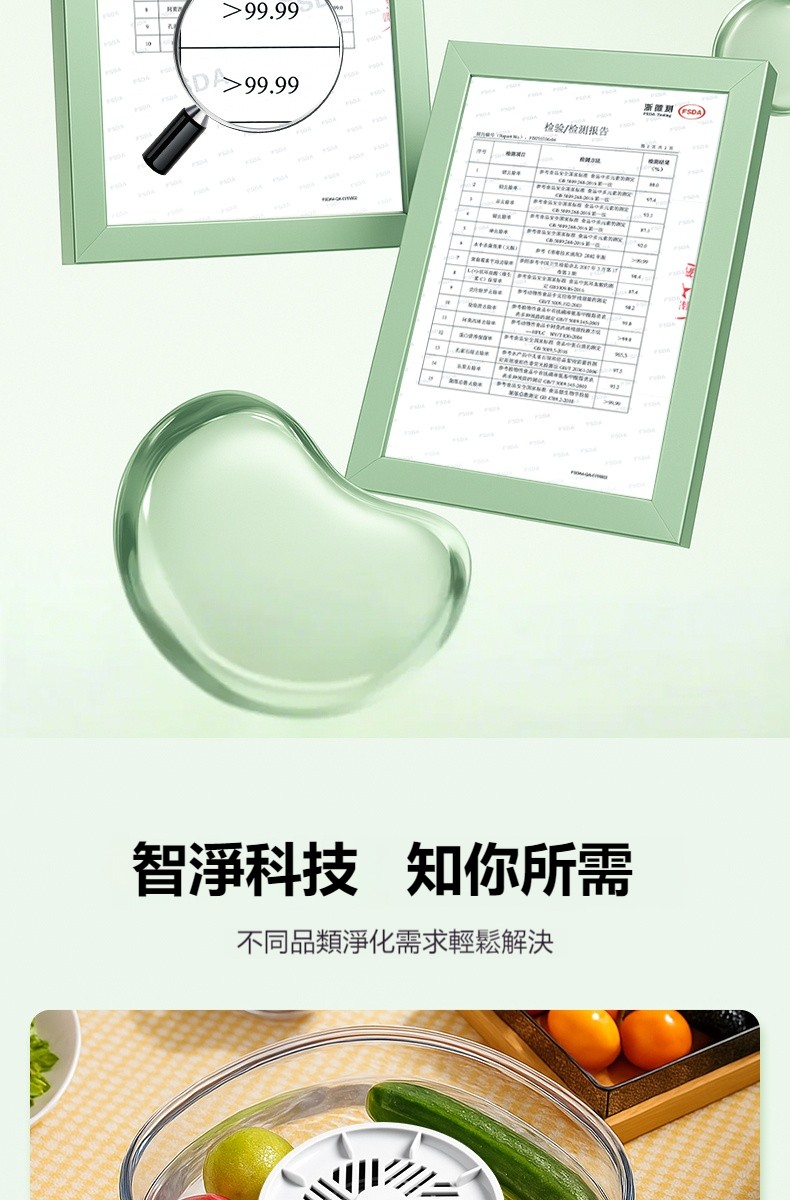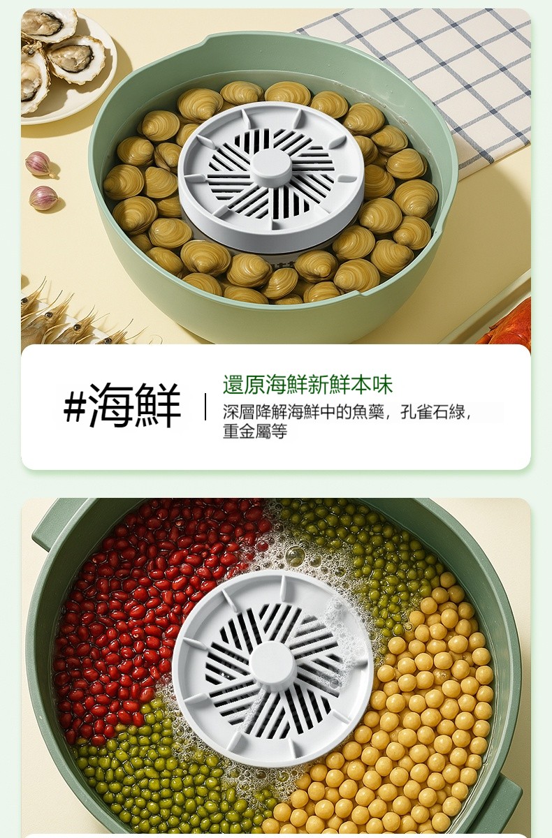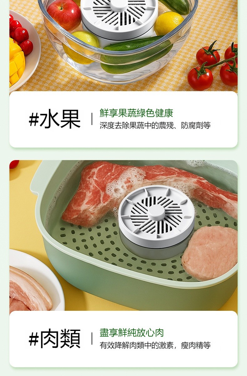 新一代智能食材淨化機【活氧殺菌99.9% 臭氧+超聲波+羟基離子】- 徹底分解農藥、激素、抗生素,一機洗淨水果、蔬菜、海鮮、肉類!生鮮食材的守護者,家人吃的更放心~